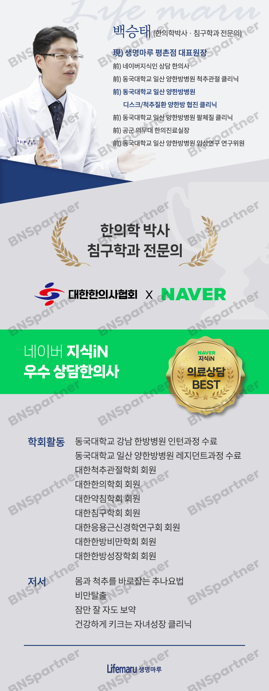 평촌 생명마루한의원의 대표 원장님 약력을 소개하기 위한 이미지 제작.